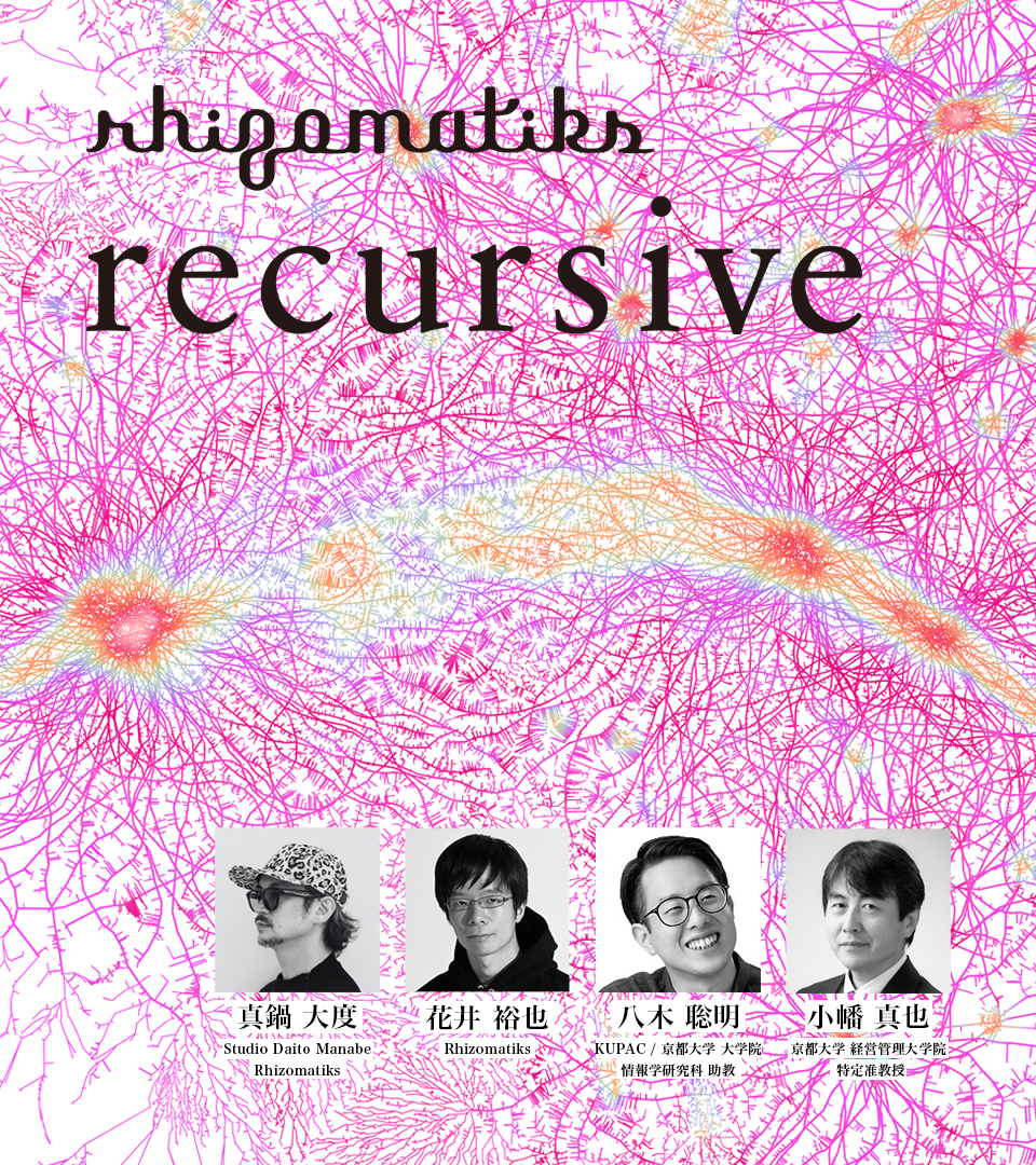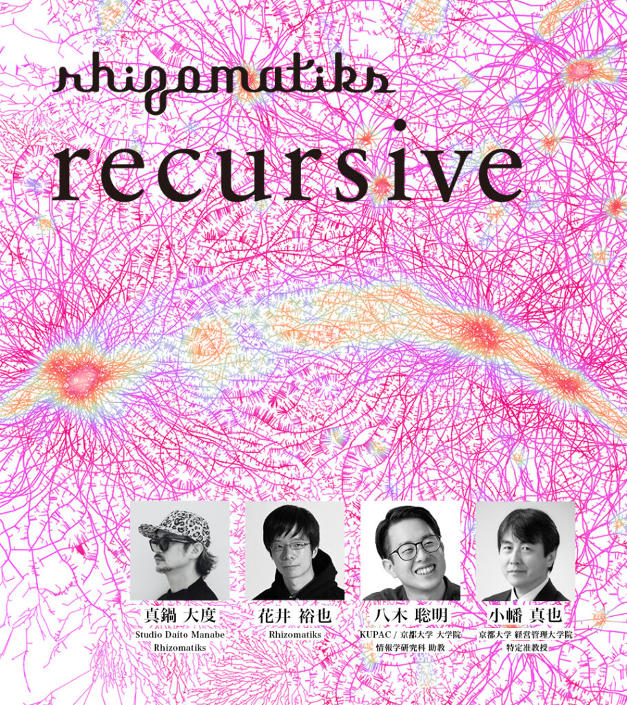 Rhizomatiksを主宰する真鍋大度氏、花井裕也氏による《recursive》の開発背景や技術に関するトークセッションを開催します。特にフルスクラッチでAIを開発した舞台裏の様子から最新の活動まで幅広い議論を深めます。