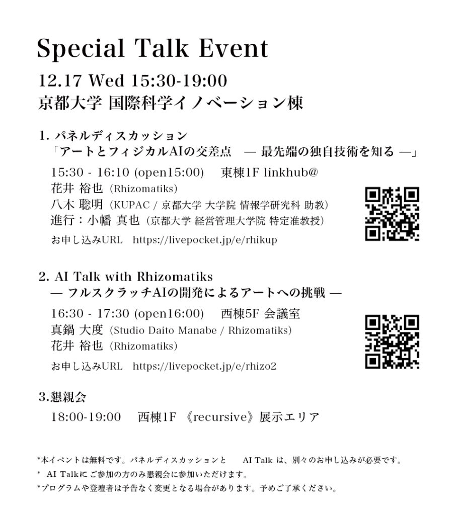 事前申込制 ※懇親会に参加希望の方は、2.AI Talk with Rhizomatiksの申込が必要です)